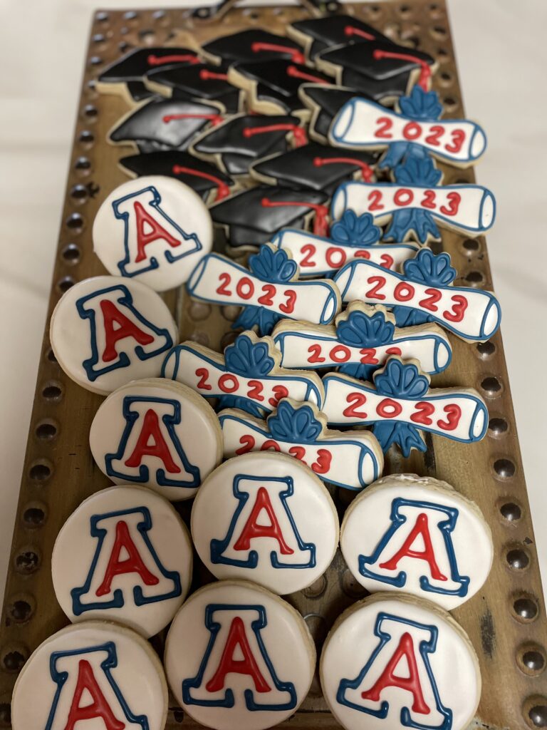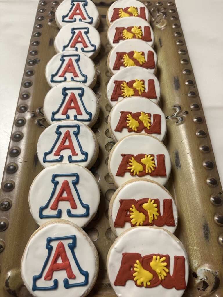 Cookies decorated with Arizona and ASU sports logos.